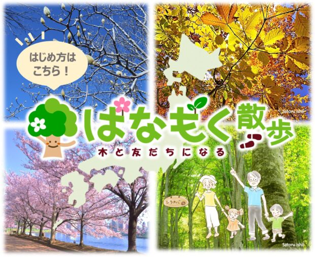 ボタンを押して散歩道の樹名板のQRコードを読むと、 木の紹介(音声ガイド付きの紹介ページ)が見られます。