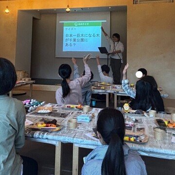 千葉市生涯学習センターさんの主催、 千葉市美浜公園緑地事務所協力で開催されました。 17名の小学校高学年のお子さん対象のイベントでした。 最初のクイズで木の大切な……