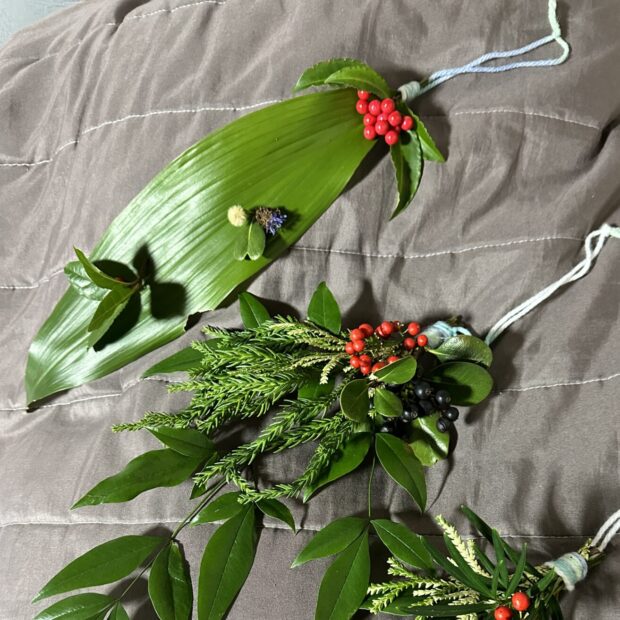 センリョウはおめでたい縁起植物。 赤や黄色い実を使ってお正月飾りを作ってみましょう。 ナンテンやマンリョウなども入れればさらにおめでたい飾りになります。