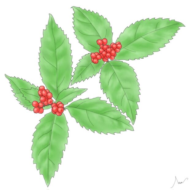 庭木や鉢植えとして栽培されます。 緑色の葉と赤い実のコントラストが美しく、 縁起のよい木ということで、 お正月の切り花としても定番です。