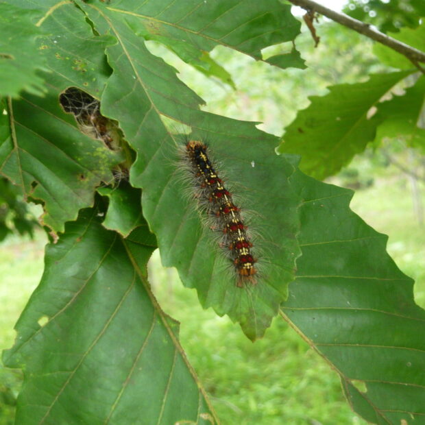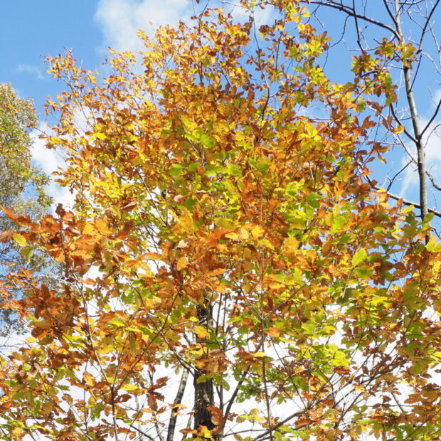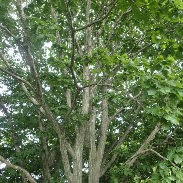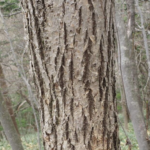 コナラの仲間で、 幹や枝に水分が多く、 燃えにくいことから「ミズナラ」と呼ばれるようになりました。 春先は成長が活発になるので、 幹や枝には樹液がたくさん流れます。 糖分を多く含んだ樹液が外に染み出すと、 夏にはそれを目当てにいろいろな虫が集まります。