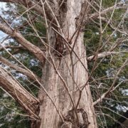 • 赤っぽい幹。 縦に細かく裂ける。