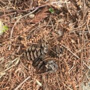 小さな松ぼっくりような実です。 長い柄がついています。