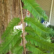触ると柔らかい、 優しい感じの葉っぱです。 小さな葉は、 対生(同じところから二枚ずつ出る)になっています。 この性質が三木博士がメタセコイアを発見したきっかけとなりました。