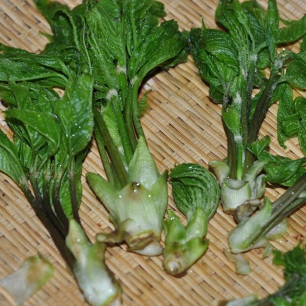 コシアブラの若芽は山菜の女王として称賛されます。 天ぷらはもちろん、 バラ肉でまいたり、 ゆでて炒めてから混ぜご飯も。 ほろ苦さと香りを生かした料理があります。 採りすぎないように、 少量を楽しむ程度にしましょう。