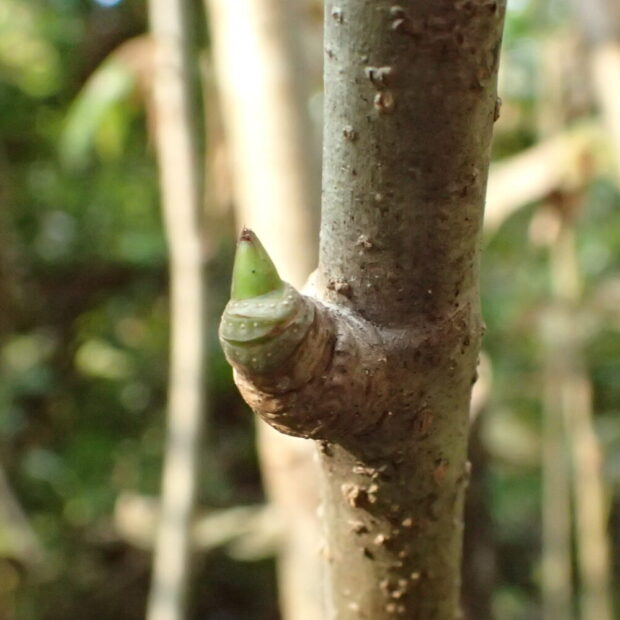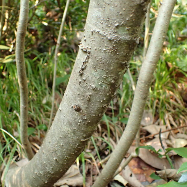 灰色がかったすべすべの幹や枝ですが、 ポツポツとした皮目があるのも特徴です。