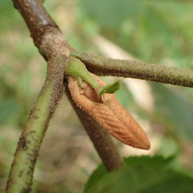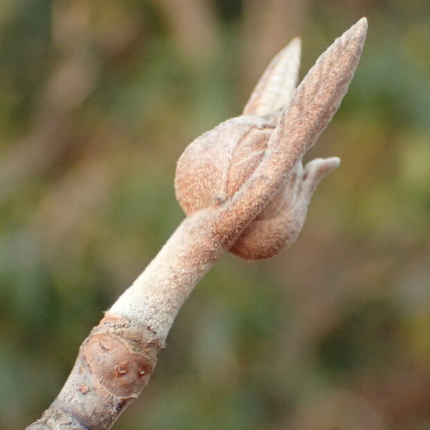 プクッと丸い花芽の両脇に葉芽がつき、 バンザイしているような形なのが特徴です。 ウサちゃんという見方も。