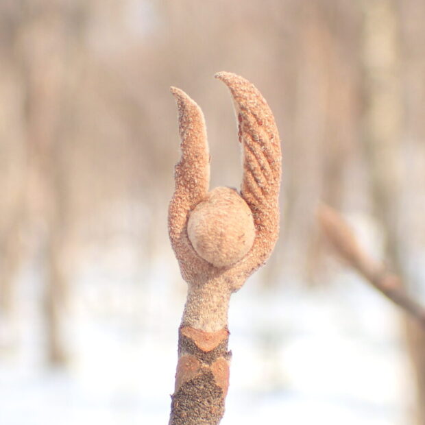 冬芽界隈では大人気(?)のオオカメノキ。 いろいろなポーズやお顔が発見できます。 観察してみましょう。