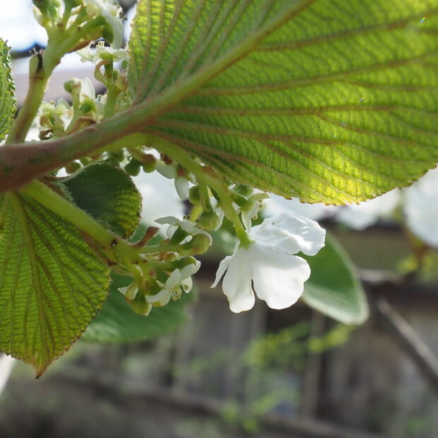 大きな丸い葉の形が亀の甲羅のようなので、 オオカメノキと呼ばれるようになりました。 「ムシカリ」という別名もあり、 葉がよく虫に食われることから「虫食われ」、 転じて「ムシカリ」となったようです。