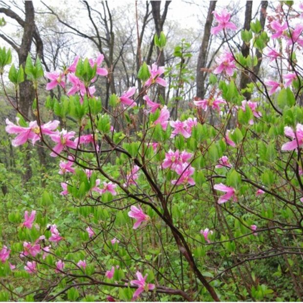 ミツバツツジの仲間の中でも、 日本海側の雪の多い「雪国」に多く分布していることからユキグニミツバツツジとよばれます。