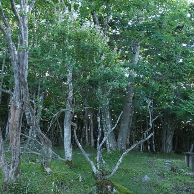 少し高い山の岩場や林縁に生えるミヤマホツツジは、 葉の先がほんの少し内側にへこんで丸くなっています。 屋久島に分布するヤクシマホツツジは、 葉の先がいちじるしくとがっています。