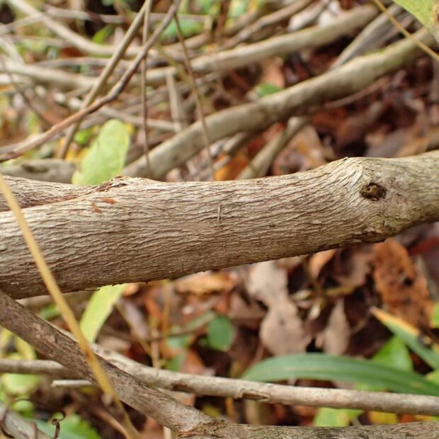 枝は根元からたくさん出ます。 若い枝は赤っぽい茶色で、 成長すると暗い灰色に変わります。