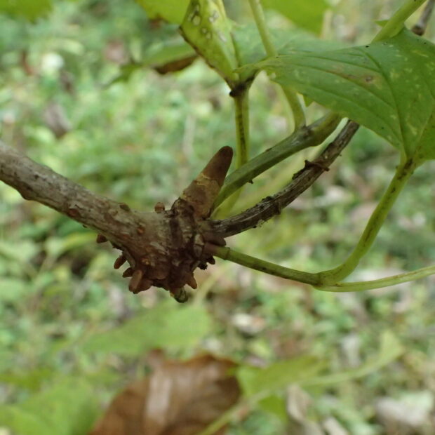 葉の付け根には、 密を出すポチッとした腺点があります。
