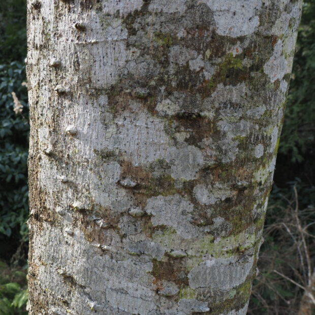 高さ15mほどにもなる落葉高木です。 木のてっぺんの方で枝を斜め上に伸ばし、 大きな葉を横に広げるので、 逆三角形のような樹形になります。