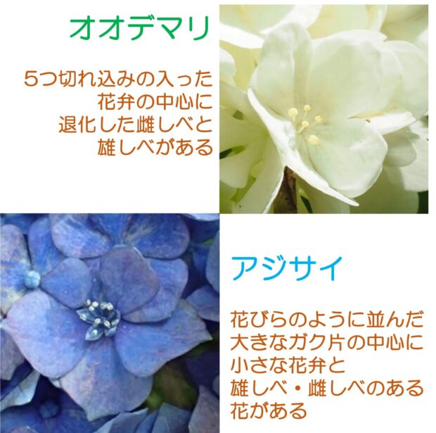 花はアジサイに似ていますが、 別の仲間です。 アジサイの大きな花(装飾花)の花びらに見えるものはがく片ですが、 オオデマリの花びらは本当に花びら(花弁)です。
