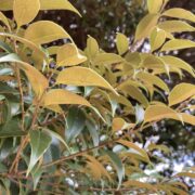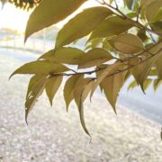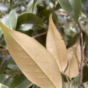 葉の裏表は色が違います。 葉の裏は金色がかっています。 厚みがあって固いです。