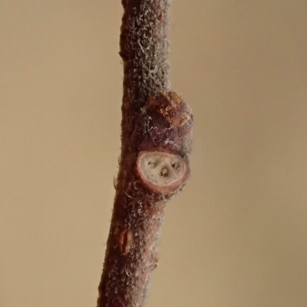 • 枝と芽に細かくて灰色っぽい毛がある。
