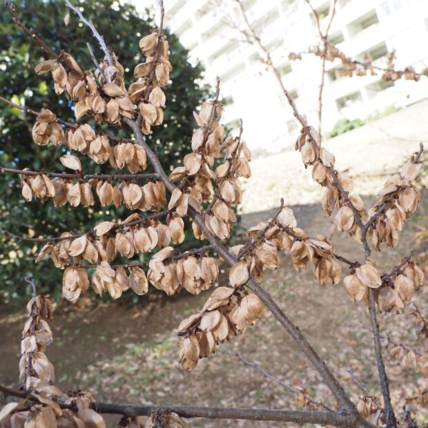 羽のついた種ができます。 葉っぱが落ちた後も木に残っていて、 寒風に吹かれて少しずつ飛んでいきます。