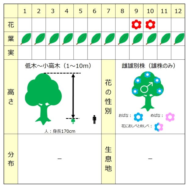 高さ3~6m、 こんもりと丸い木が多いです。