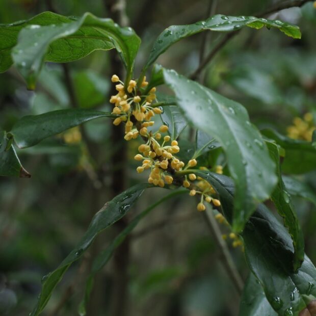 花の香りは、 とても華やかで秋が来たことを教えてくれます。 キノコ狩りをする人はキンモクセイの花の香りからキノコがとれる季節がきたと感じるそうです。