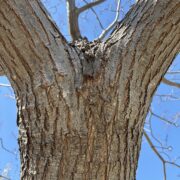 大きな葉痕に丸い冬芽がちょこんと乗っています。