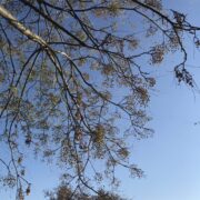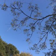 大きな葉痕に丸い冬芽がちょこんと乗っています。