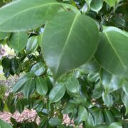 葉の長さは8~15cmで枝先に集まってつきます。 表面は光沢がありツルツルしています。