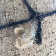 ホシベニカミキリの幼虫がいると、 幹に、 小さな穴、 樹液、 木くずやフンなどが見られます。