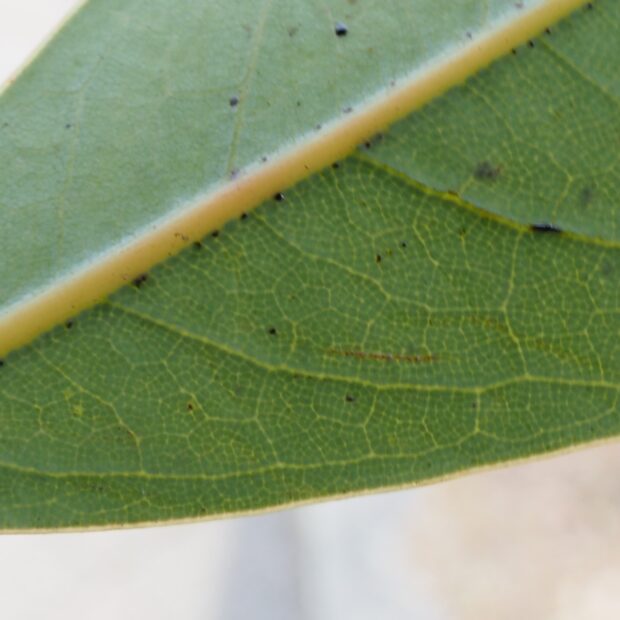 • 葉の裏を拡大したところ。 光が透けて網目模様が見える。