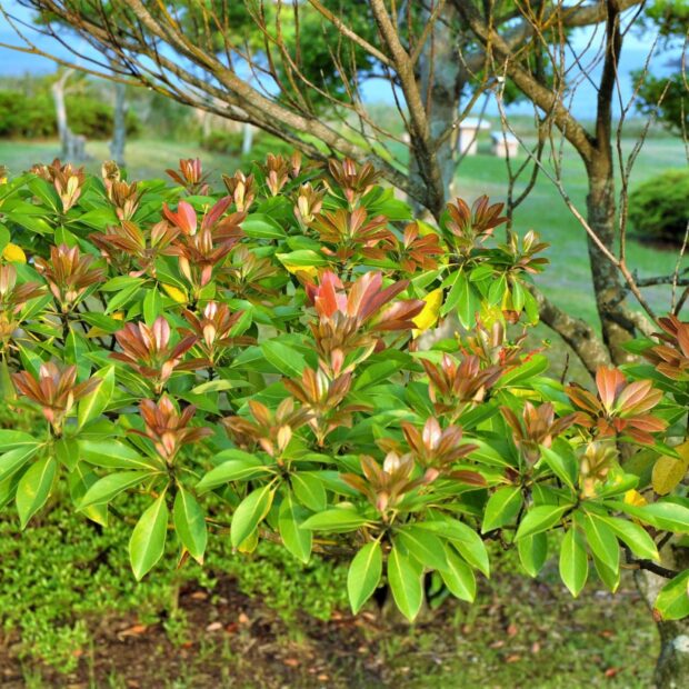 新芽が赤くて目立ちます。