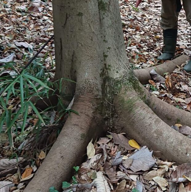 老木になると、 樹皮がはがれてきます。 また根元は板根状(根元が板のようにせり出す)になります。