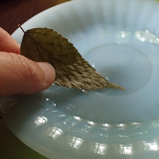 • ザラザラの葉の時期に押し葉にして濡らして使うといつでも使える