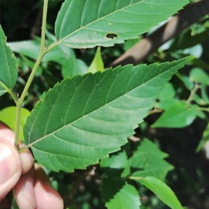• 葉の周りの鋸歯が目立つ。 葉脈は鋸歯まで届く