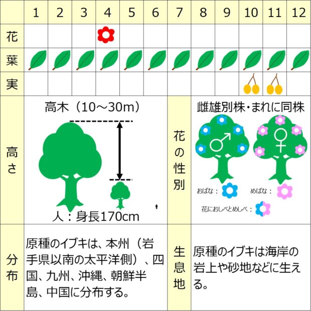 分布原種のイブキは、 本州(岩手県以南の太平洋側)、 四国、 九州、 沖縄、 朝鮮半島、 中国に分布する |
