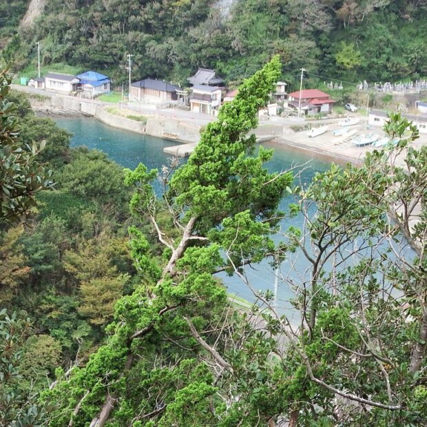 カイヅカイブキの原種であるイブキは、 海辺の岸壁や砂地に自生し、 海風に耐えたくましく生きます。