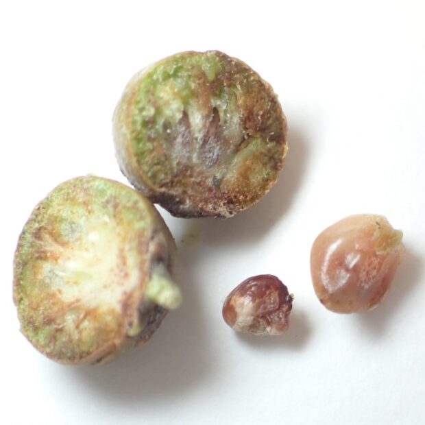 花は、 雌雄ともにとても地味で、 一見花のように見えません。