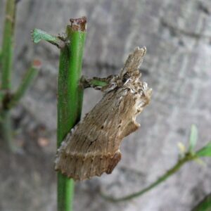 濃い茶色の地に白っぽい毛が沢山生えています。