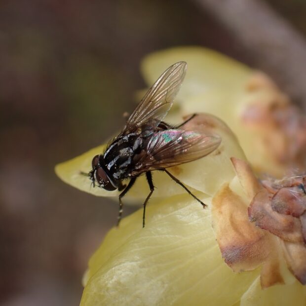 • ツマグロキンバエ。 花粉や蜜をなめる。