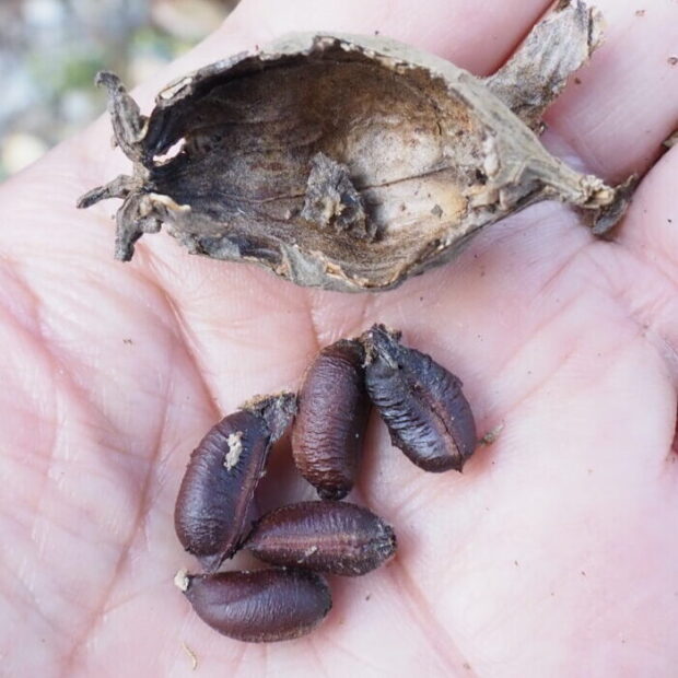 • 実の中には5~20個のかたい種(そう果)が入っている。 これがゴキブリが産む卵鞘(らんしょう)(卵が複数入っている堅いさや状のもの)にそっくり!