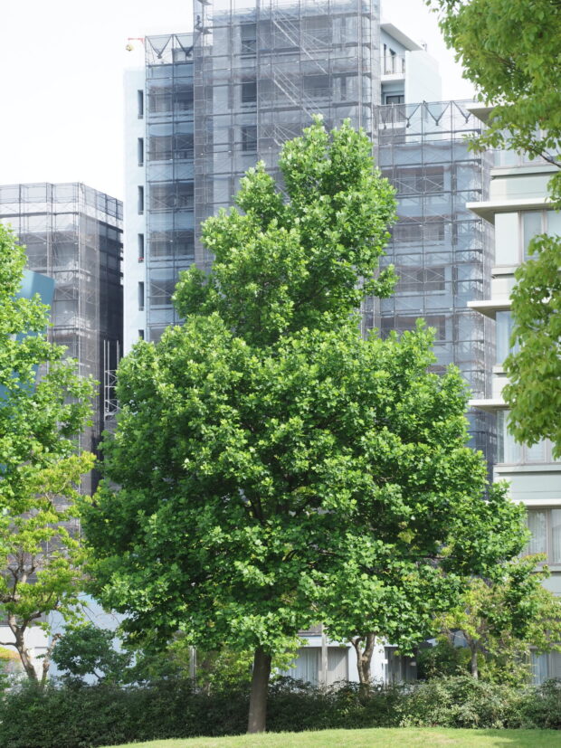 ユリノキはまっすぐに幹が伸びるので、 北米のユリノキ林はまるで針葉樹の林のようなのだそうです。