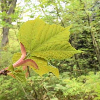 若い木の樹皮がマクワウリのような縞模様になるためウリハダカエデと名づけられました。 大きな葉と房状にかたまっている実もとても目立ちます。