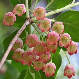 枝先に花の枝を伸ばして、 10個前後のベル状の花がかたまって咲きます。