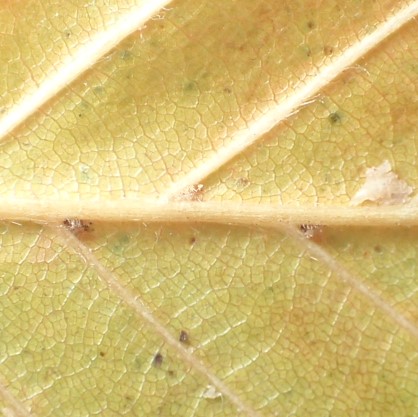 • 裏面は中央の脈と側脈がぶつかるところ(脈腋)と側脈には毛が生えています。