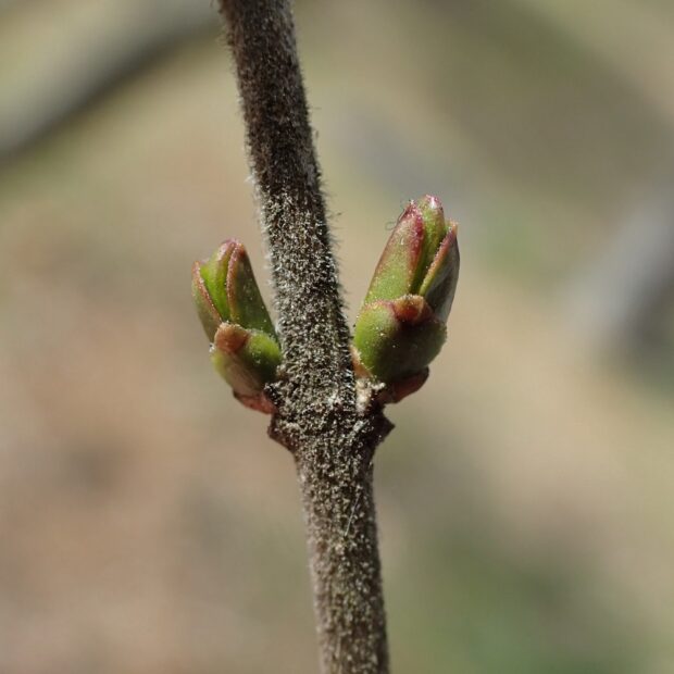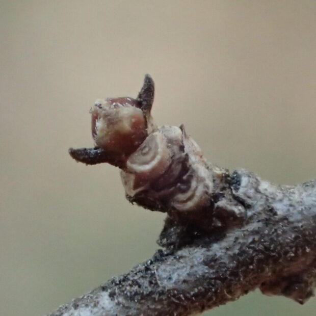 • 枝から出っ張って、 背中合わせに芽がついている。