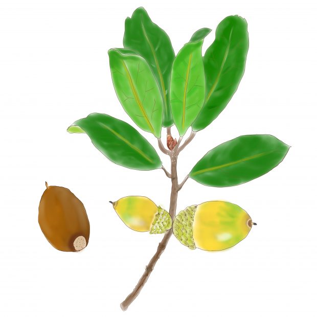自然では海岸近くの風の強い場所にはえるドングリのなる木です。 成長がゆっくりで背が低めです。 また幹が大変硬くて、 その木材でガラスに傷がつくほど硬いです。 備長炭の材料としても知られています。