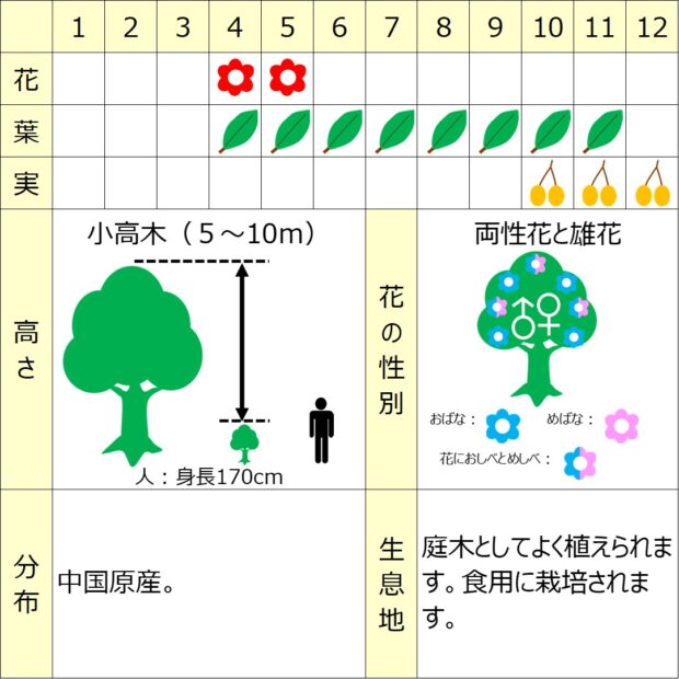 生息地庭木としてよく植えられます。 食用に栽培されます。 |