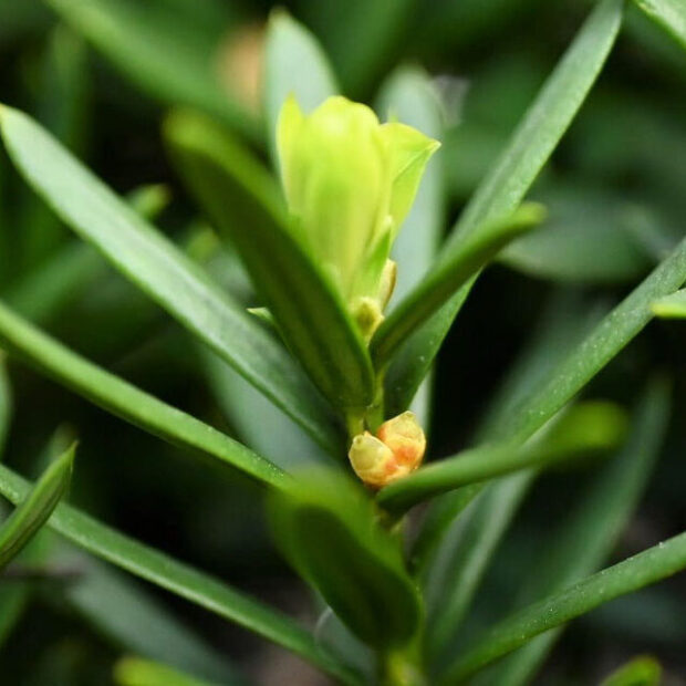 • 太めの針葉。 表面は濃い緑色で艶がある