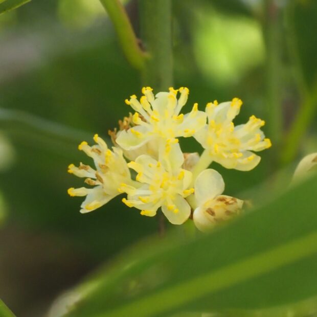 4~5月に薄黄色の花を咲かせます。 雌の木と雄の木があります。 植栽は雄の木がほとんどですが、 雌の木も稀に植えられています。