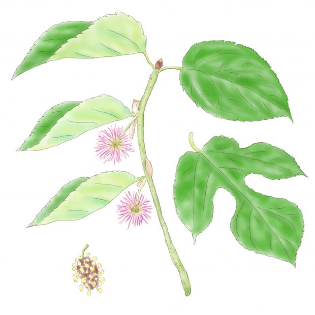 ・コウゾとヤマクワもよく似ていますが、 花・実・冬芽・葉の手触りなどで見分けられます。