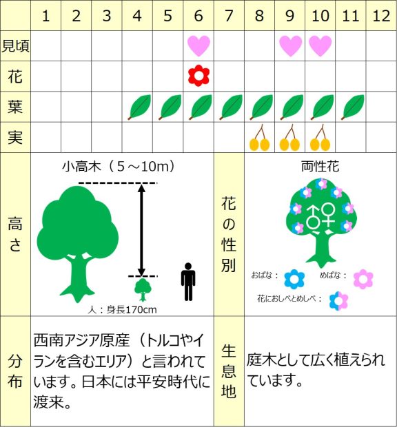 分布西南アジア原産(トルコやイランを含むエリア)と言われています。 日本には平安時代に渡来 |